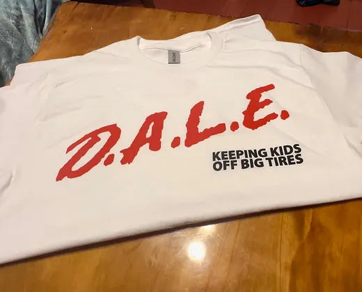 D.A.L.E. - Keeping Kids Off Big Tires T-shirt (white)